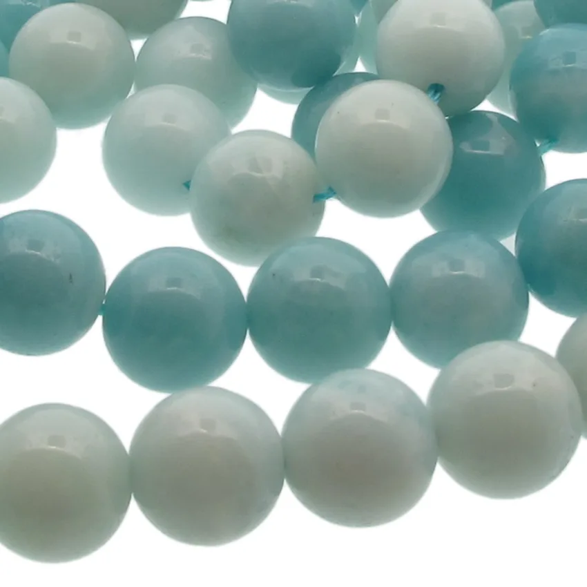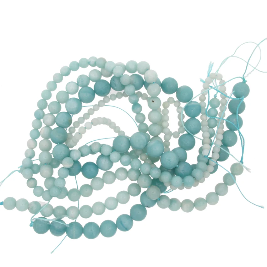 Amazonit en rund smyckesten eller ädelsten med ett hål på ca 1mm säljes på sträng med ca 60-65 stenar. En omtyckt sten för smycketillverkning.