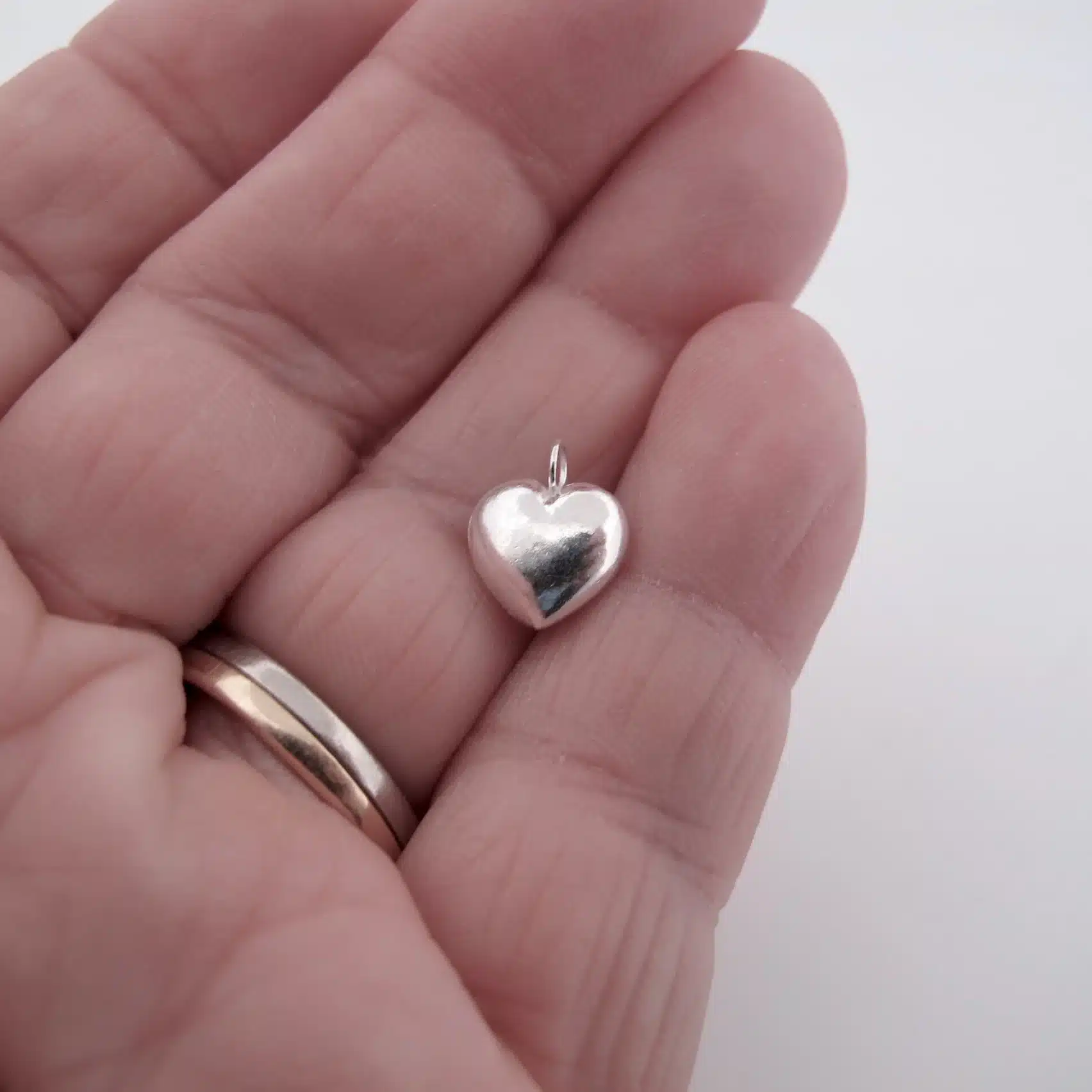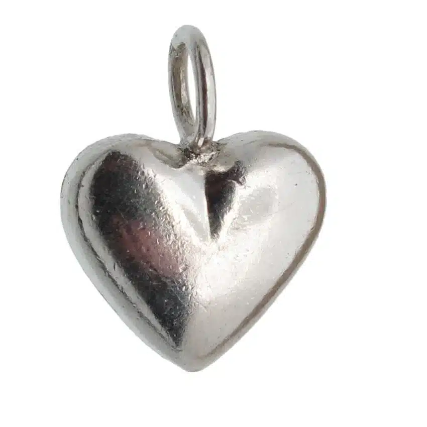 Litet hjärta ett tillverkad för hand i sterlingsilver mäter ca 6.6×7.3 mm. Ett berlock som passar perfekt för örhängen eller som en liten detalj i dina smycken