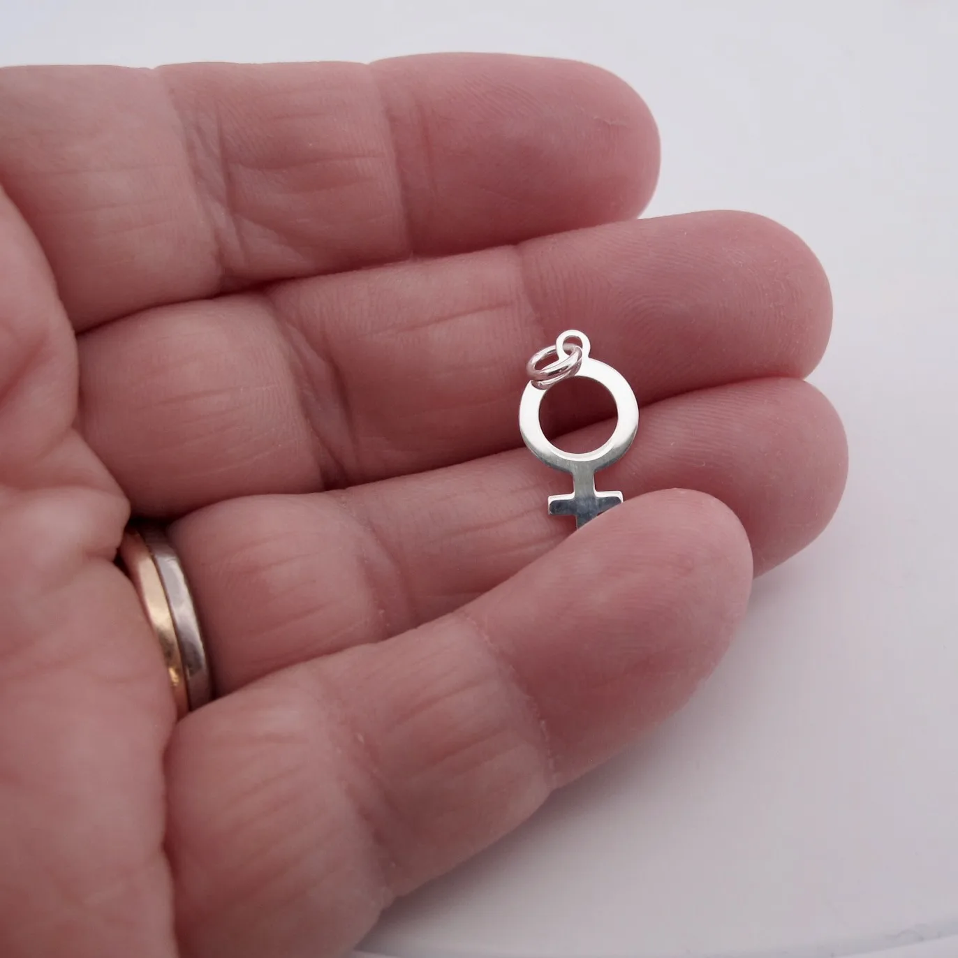Silverberlock med kvinnosymbolen ca 17×9 mm en mindre berlock som är tillverkad i  sterlingsilver, passar som berlock i ett halsband eller monterad för örhänge