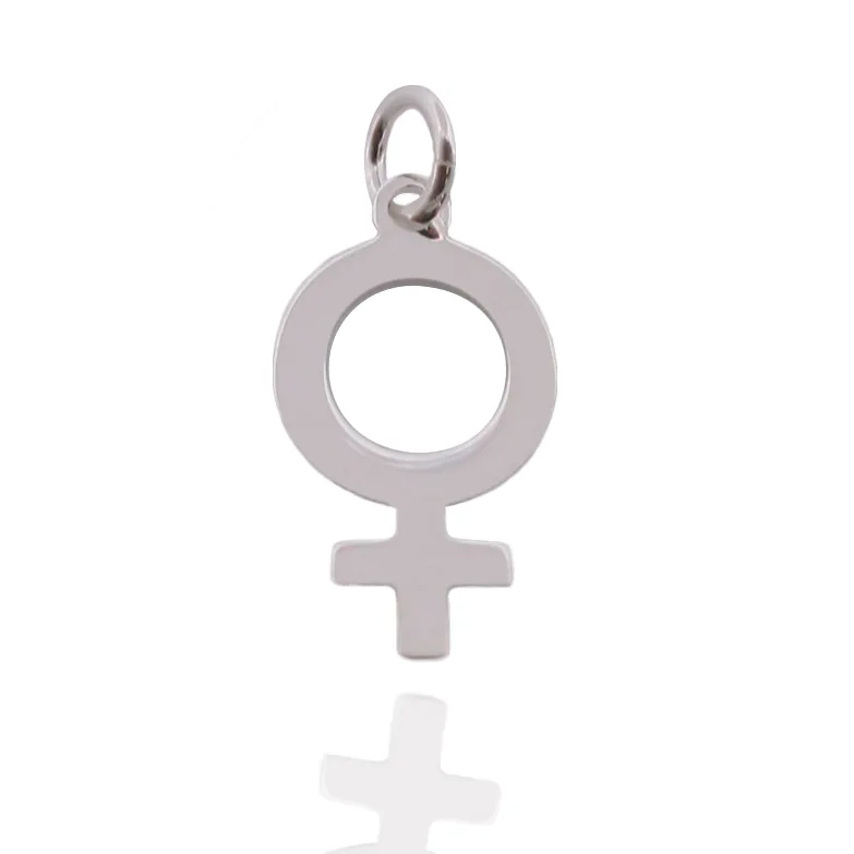 Silverberlock Kvinnosymbol är ett silverhänge format som den kvinnliga könssymbolen, med en cirkelformad topp och ett kors under, mot en vit bakgrund.