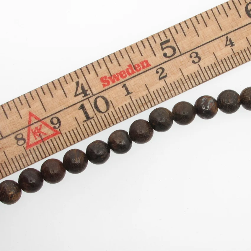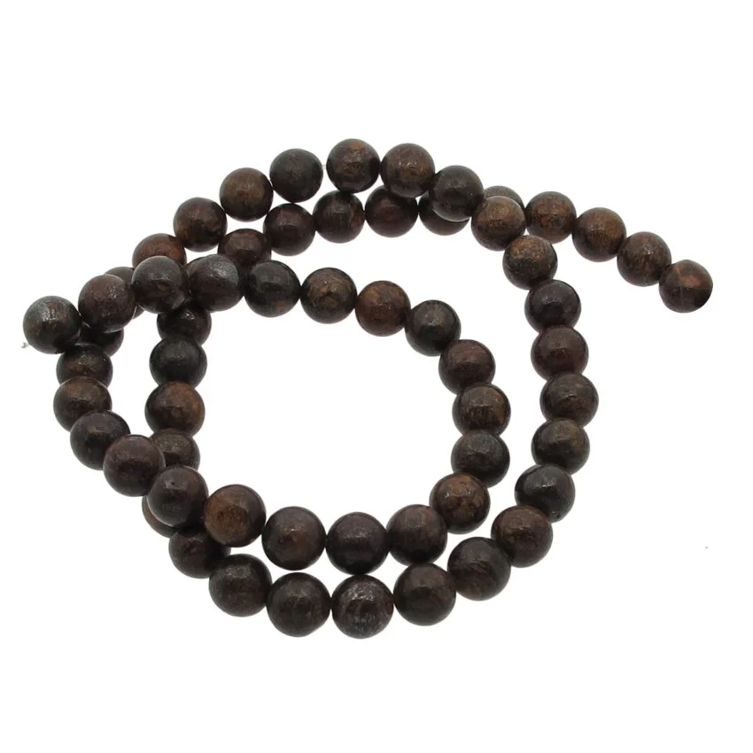 Bronsit rund ädelsten som har ett hål på ca 1 mm och säljs på sträng om ca 65-70 stenar. Smyckestenen är en form av mineralet enstatit och används för andlig utveckling, healing och medkänsla.