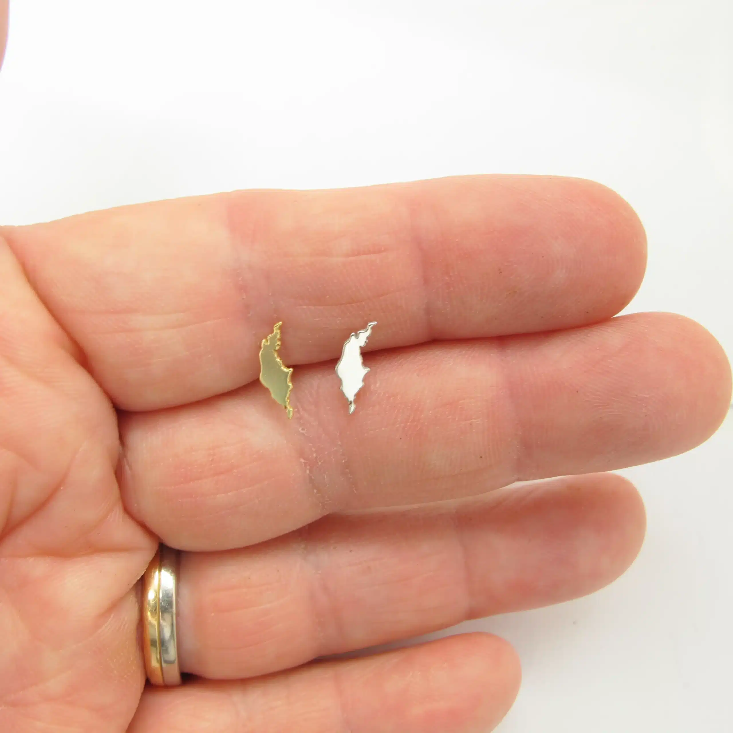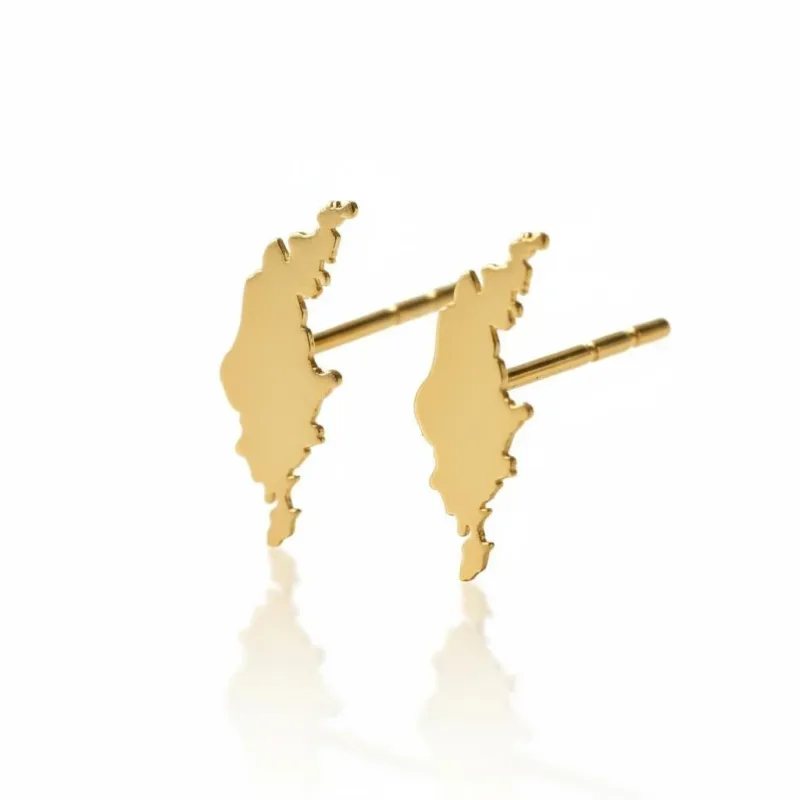 Gotland Big little Island örhänge tillverkad i sterlingsilver, laserutskuren från 0.6 mm silverplåt ca 10mm hög finns som rodinerad eller förgylld.