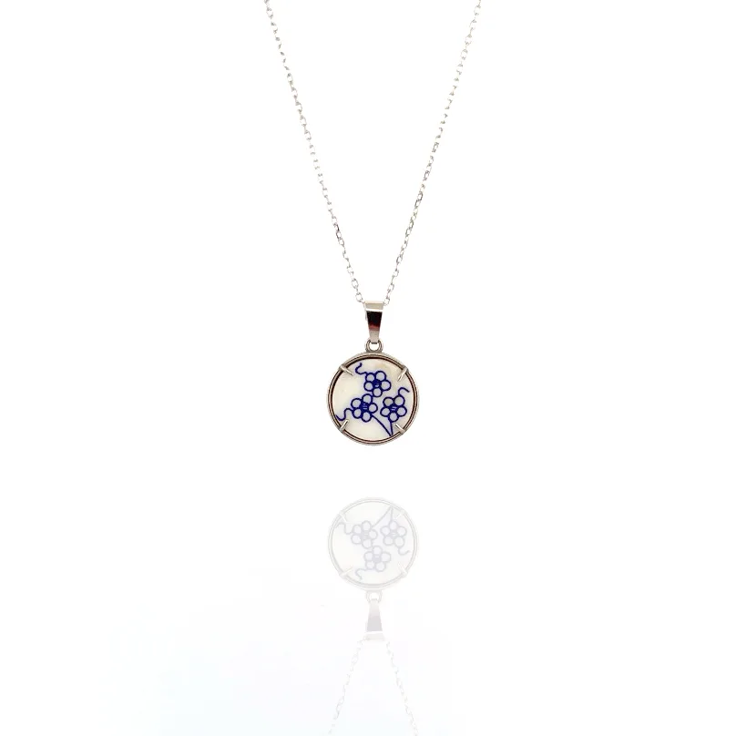 Porslinssmycke tillverkat av Gustavsbergs fina porslin Dresden infattat i rodiumpläterat sterlingsilver. Levereras med en 45cm ankarkedja.