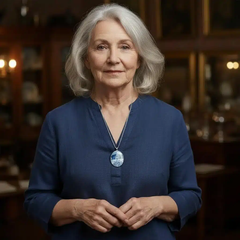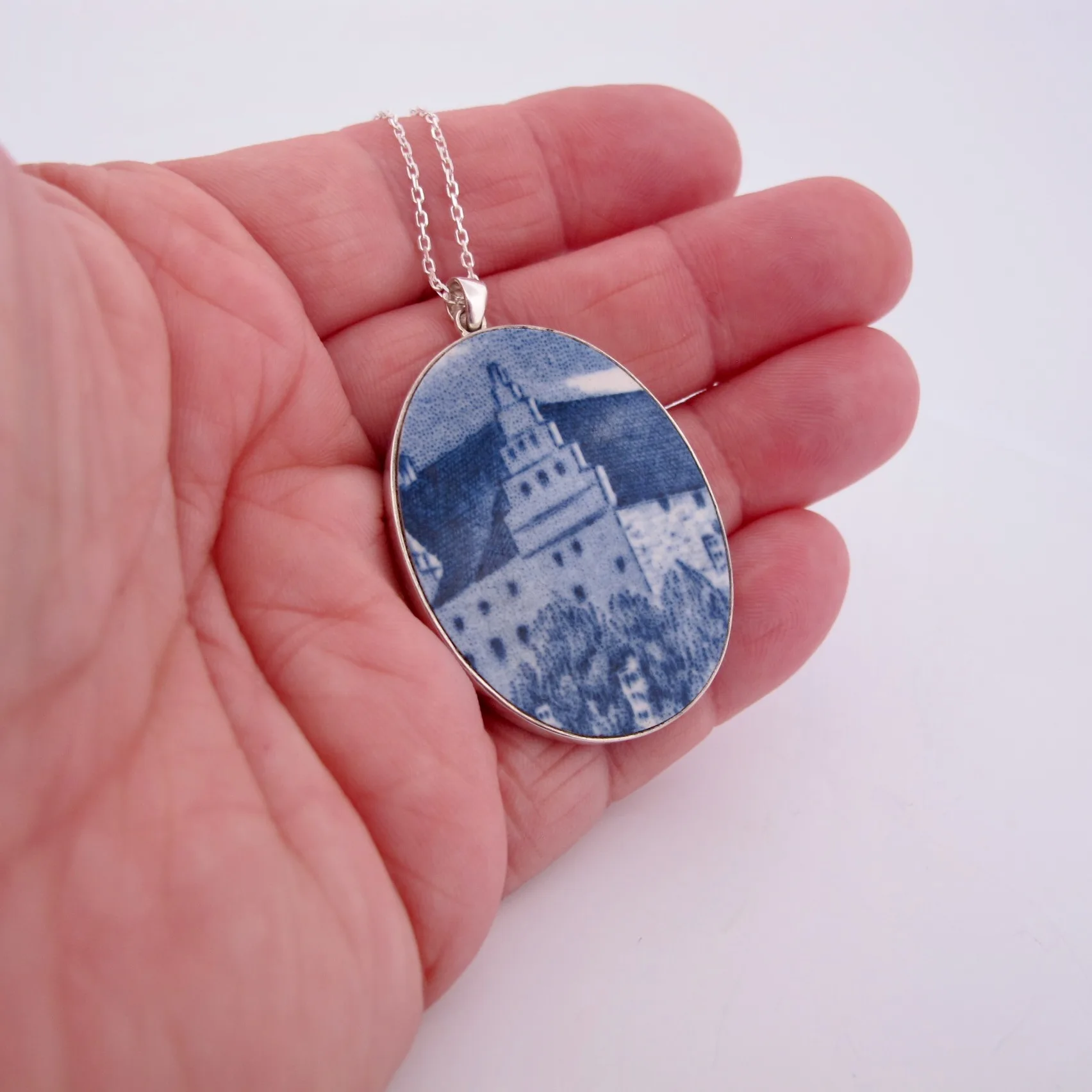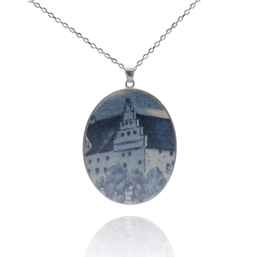 Porslinssmycke tillverkat av Gustavsbergs fina porslin Fasan infattat i sterlingsilver. Silversmycke som levereras med en 50 cm kedja.