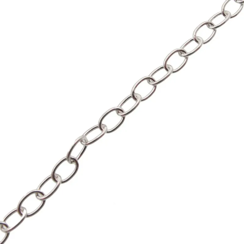 Oval lite tunnare silverkedja som är tillverkad av ca 0.5 mm tråd av sterlingsilver. Silverkedjan har många användningsområden inom smycketillverkning.